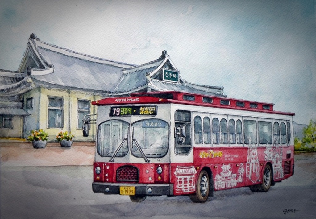 전주역에 있던 터미널에서 출발하여 전동성당,풍남문 지나 금산사 구간을 다니던 예쁜 버스입니다.