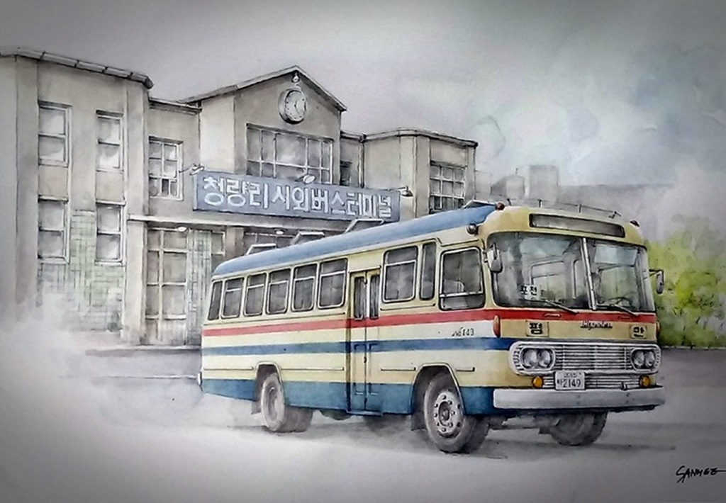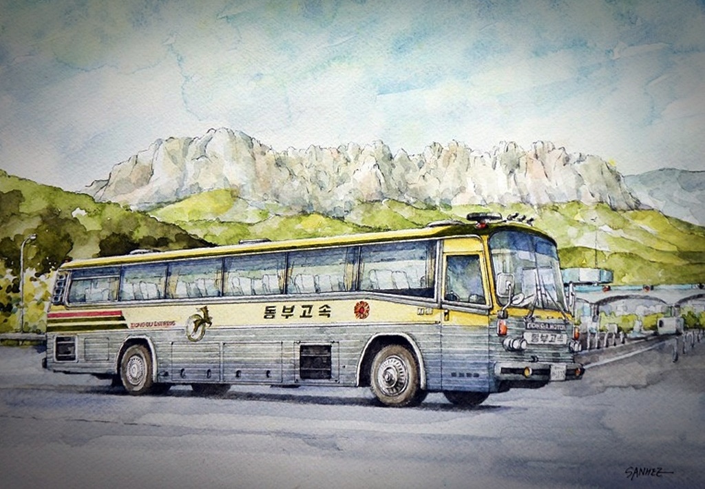 80년대 구불구불한 대관령을 힘들게 넘어다녔을 동부고속버스를 설악산 울산바위가 보이는 곳에 옮겼습니다.