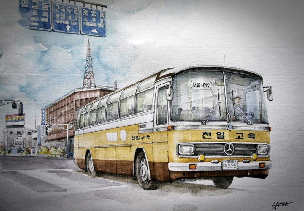 70년대 전국 여기 저기에 고속도로가 뚫리고 '일일생활권'이라는 단어가 등장하며 웅장한 엔진소리와 육중한 미국버스 차체의 특이함을 보여주었던 머나먼 추억 속 고속버스입니다.