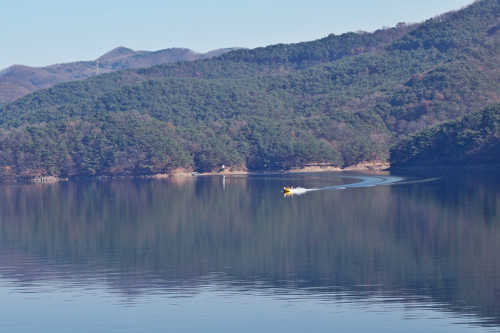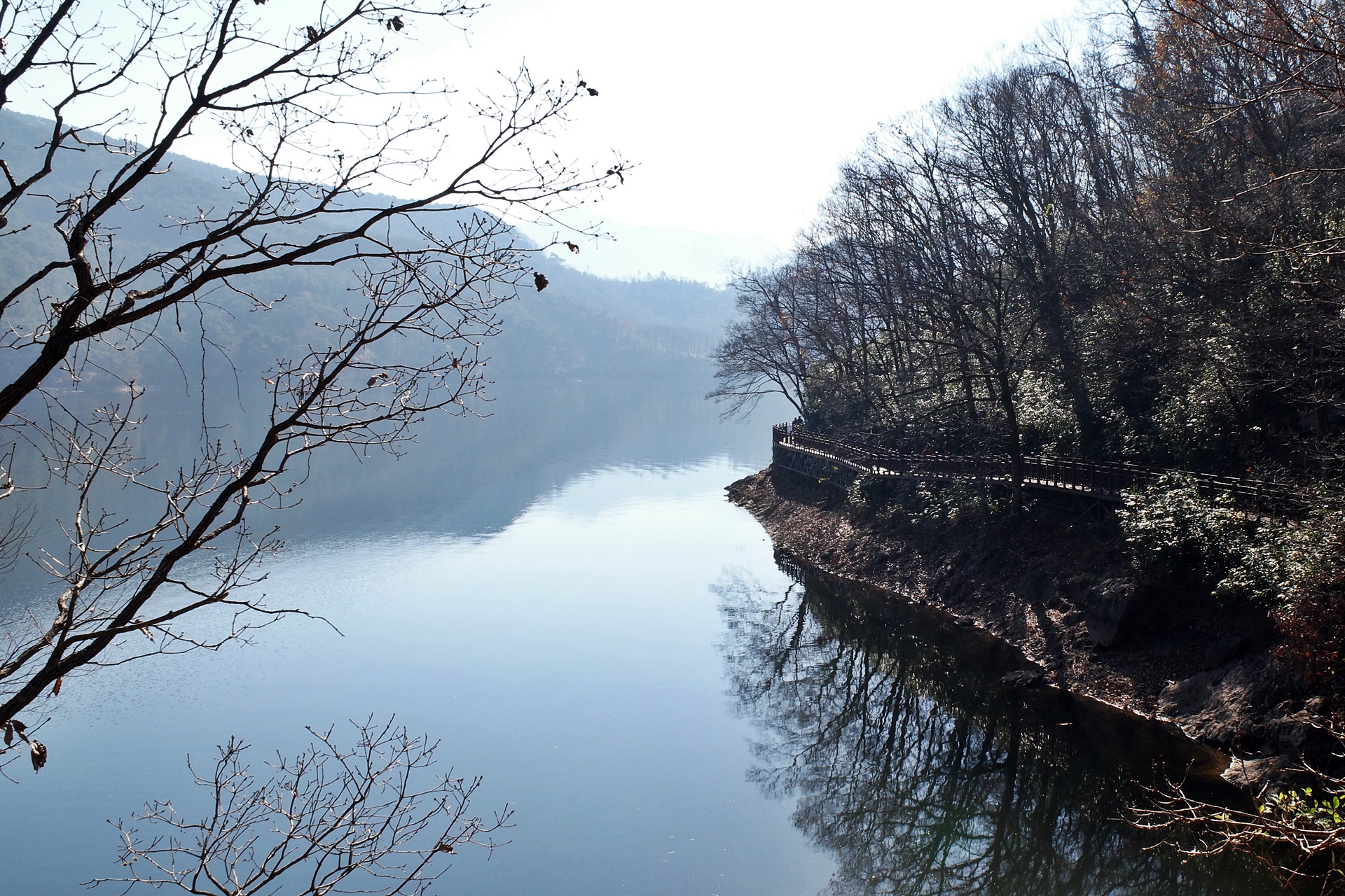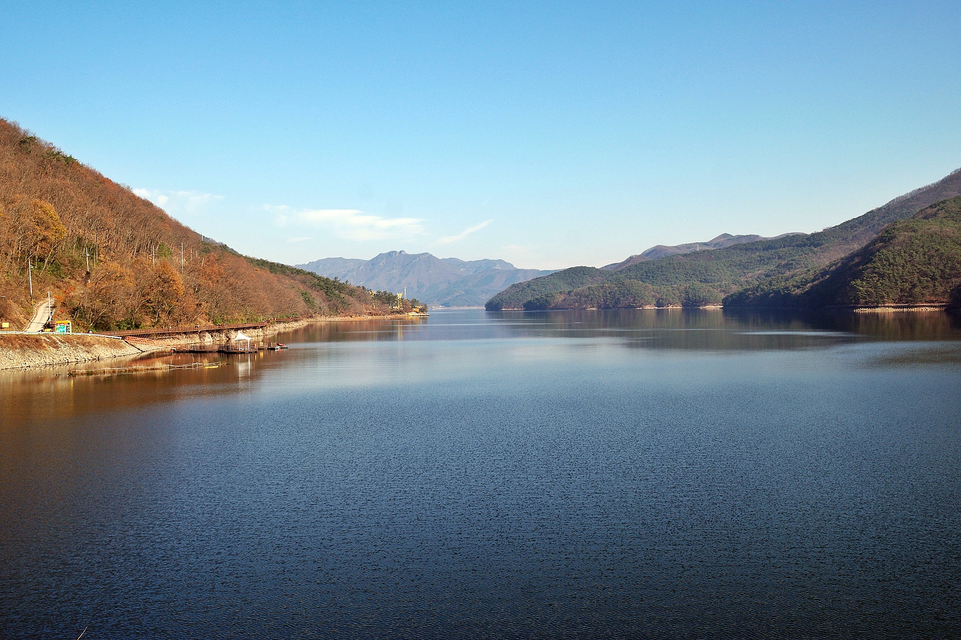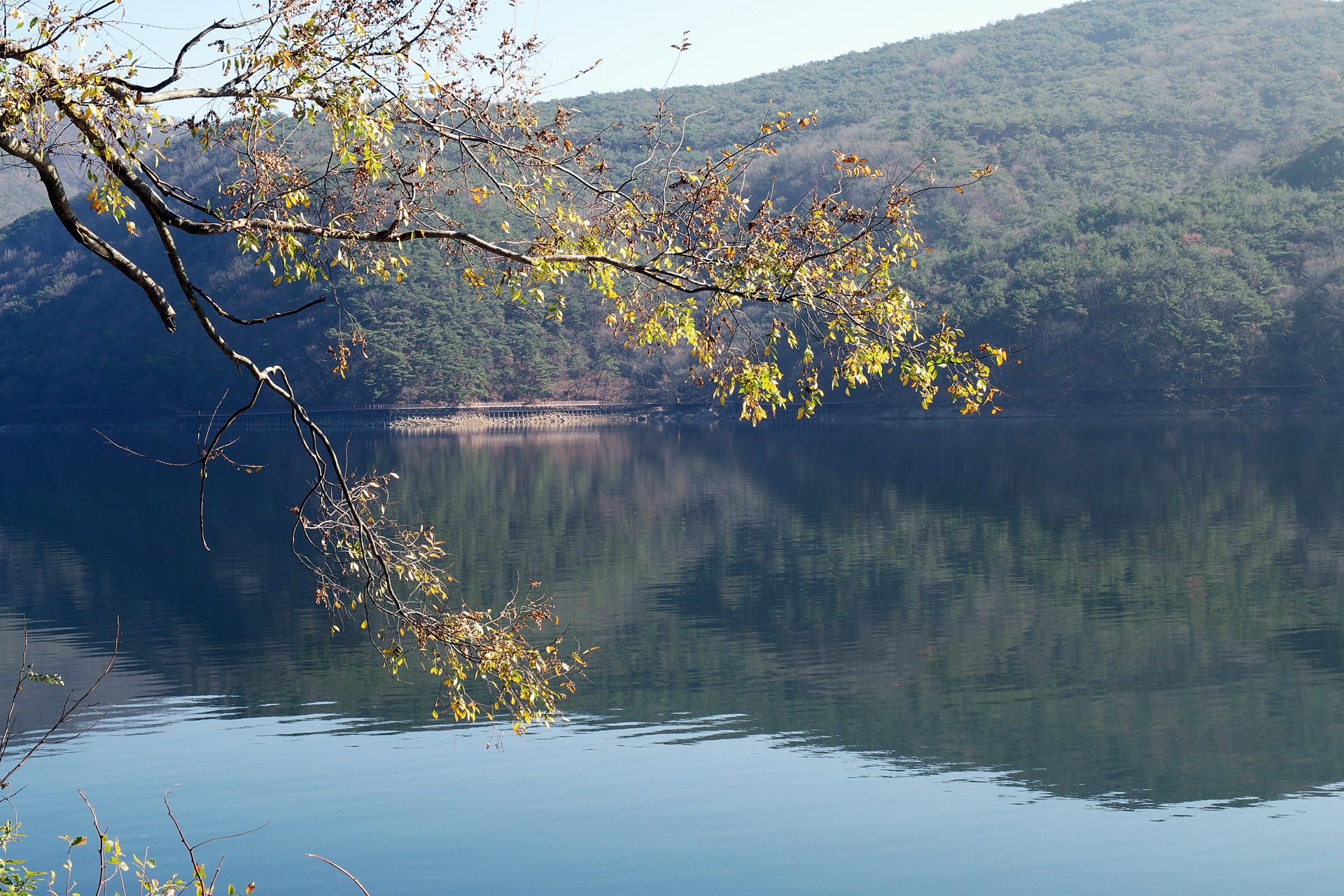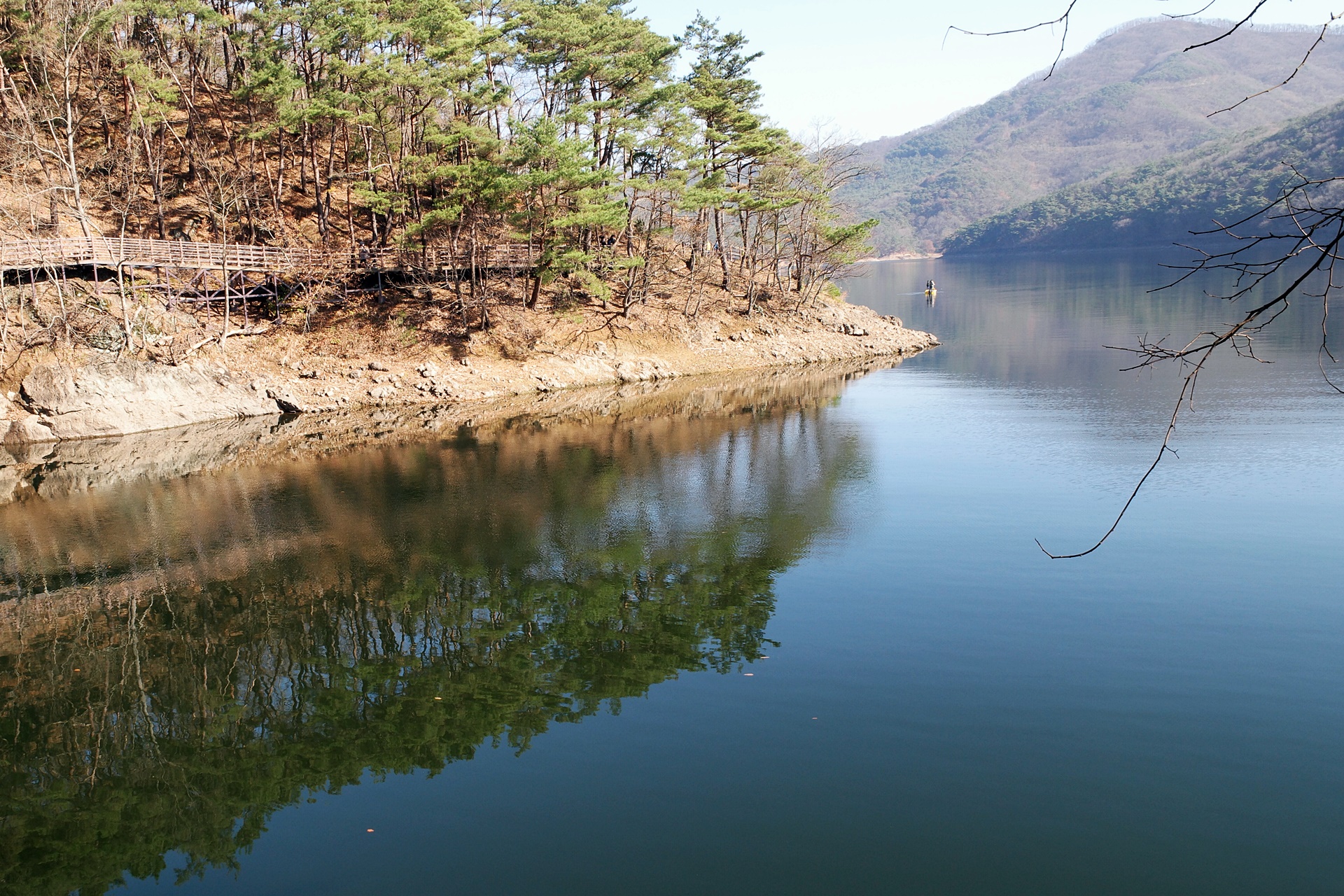몇 년 전 잔설이 남아 있을 때 장성호를 트레킹을 했었습니다