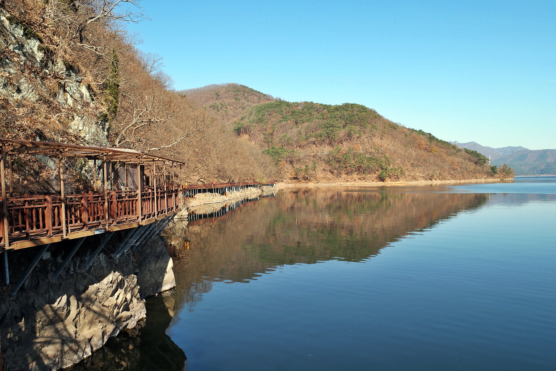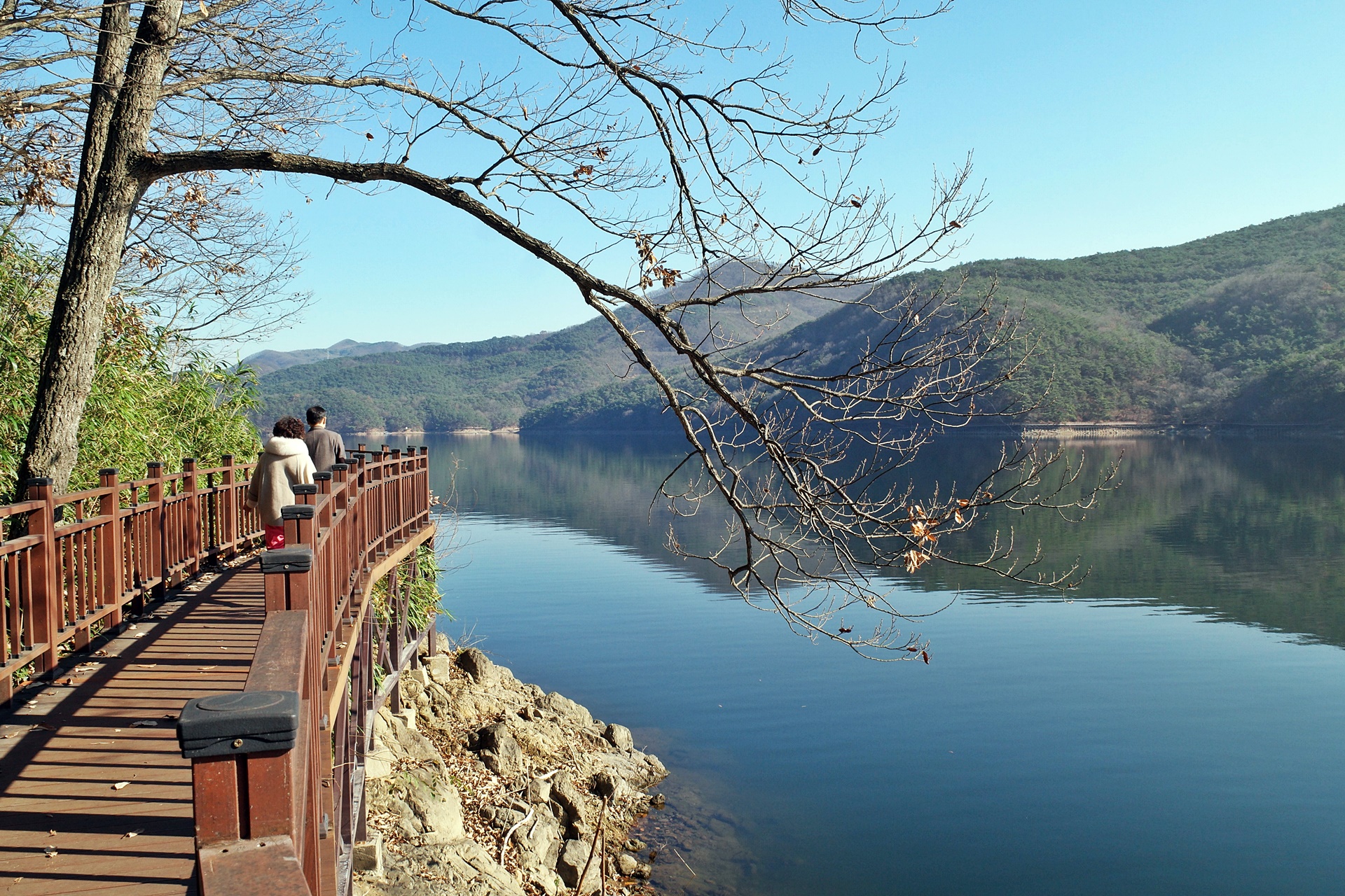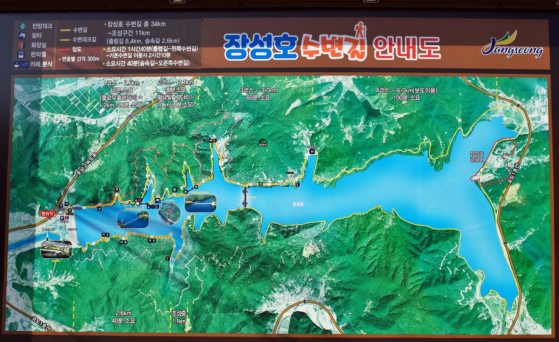 장성호는 둘레가 35키로인데 지금은 수성마을까지 7.5킬로 구간이 수변길로 조성 되어있고 계속 공사를 해 나가고