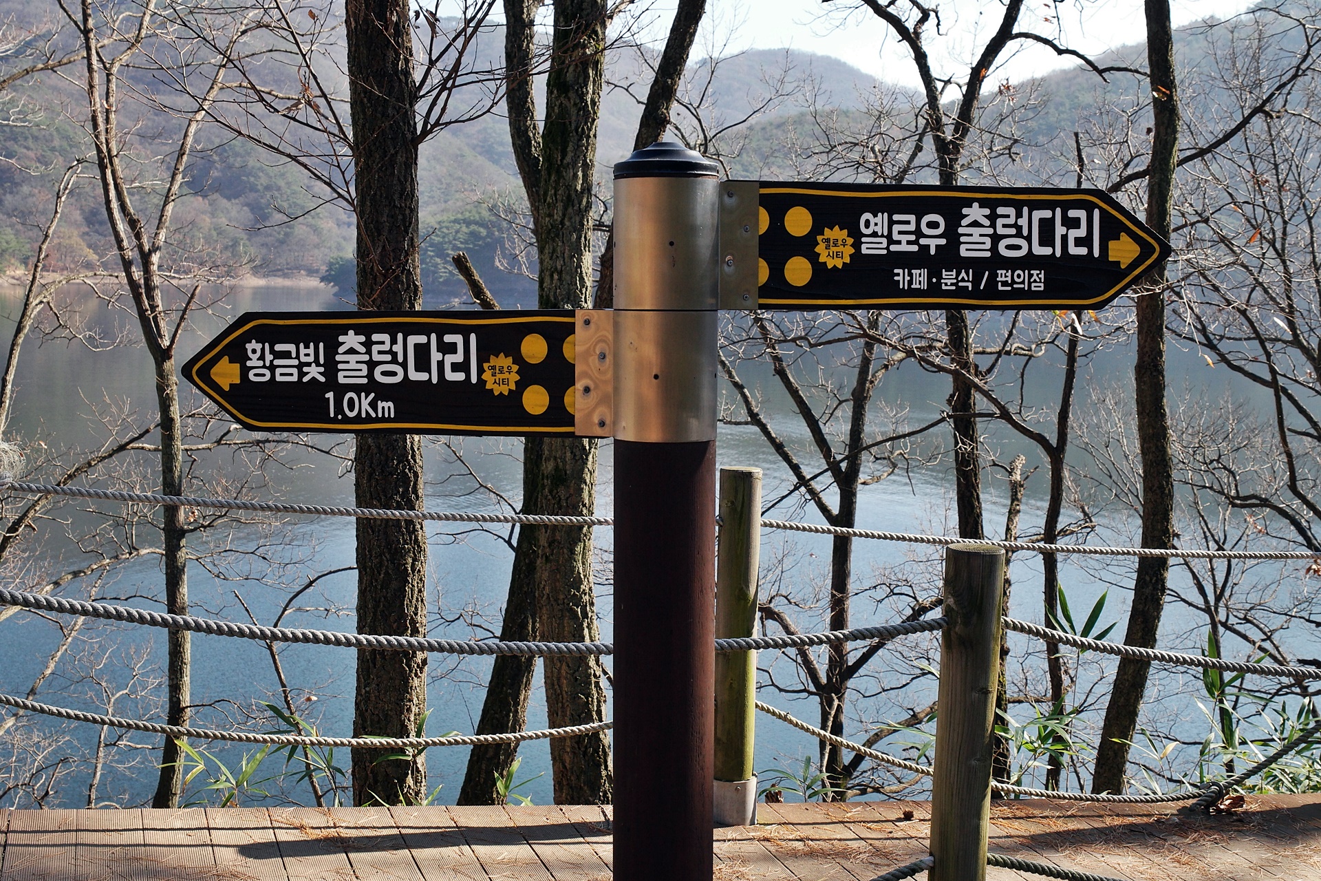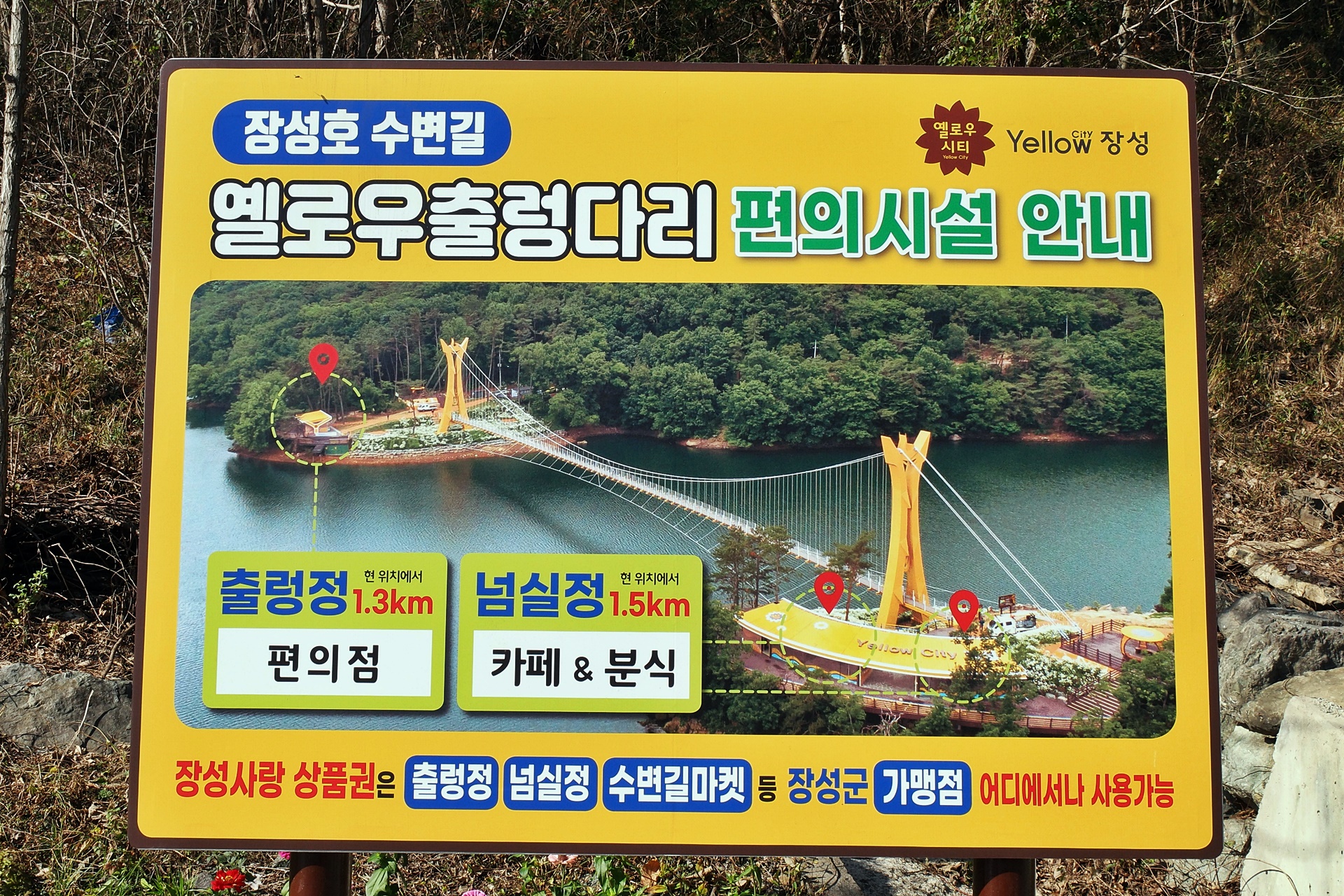 입구에서 1.7키로를 가면 옐로우출렁다리에 도착하게 되는데 이곳에는 화장실, 편의점, 분식 점등 입장권을 현금처럼