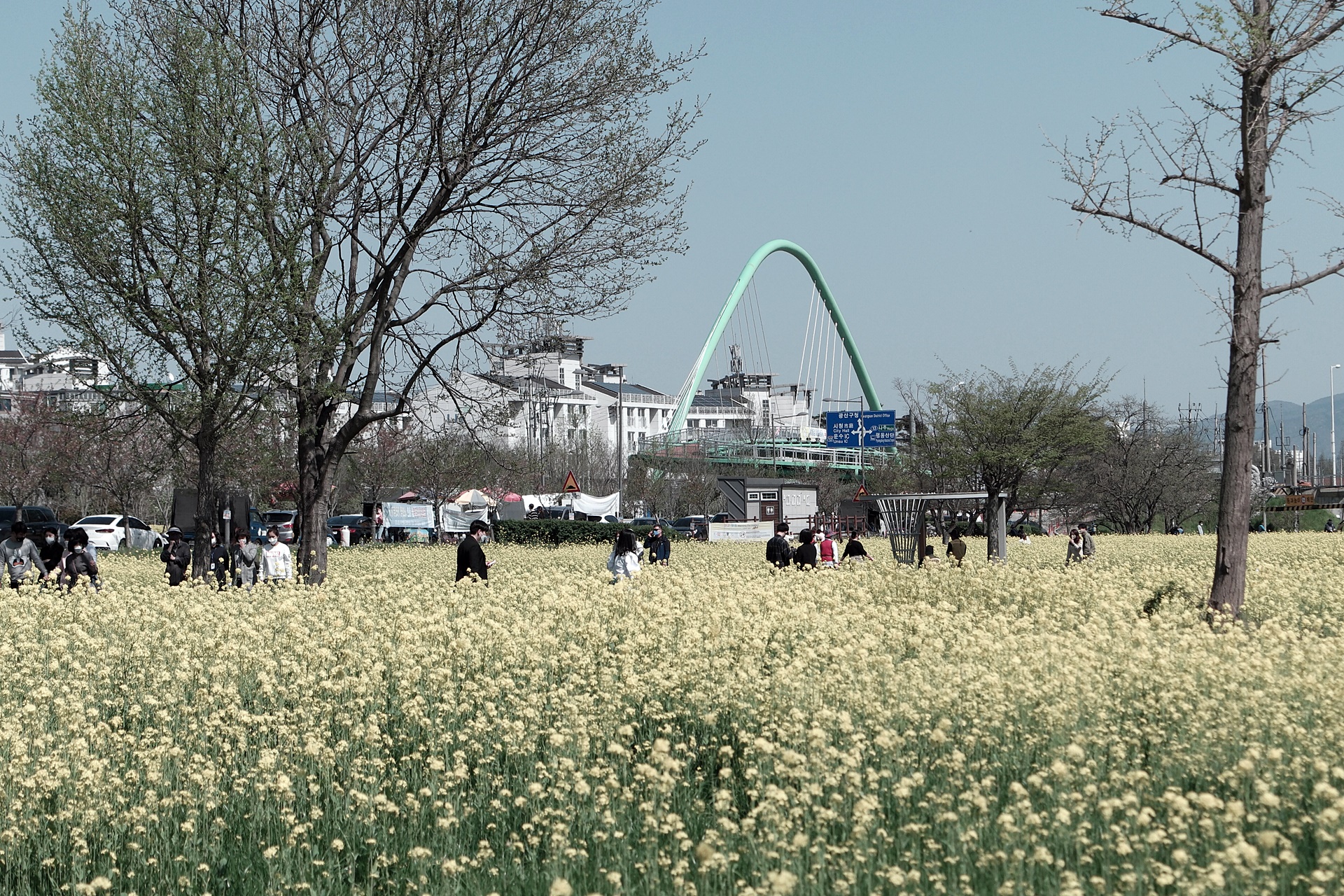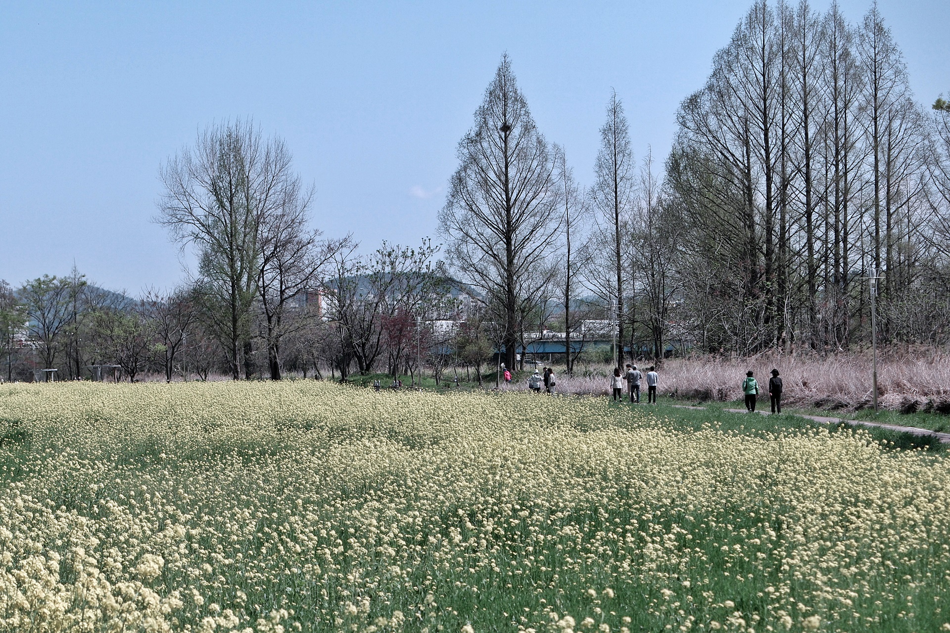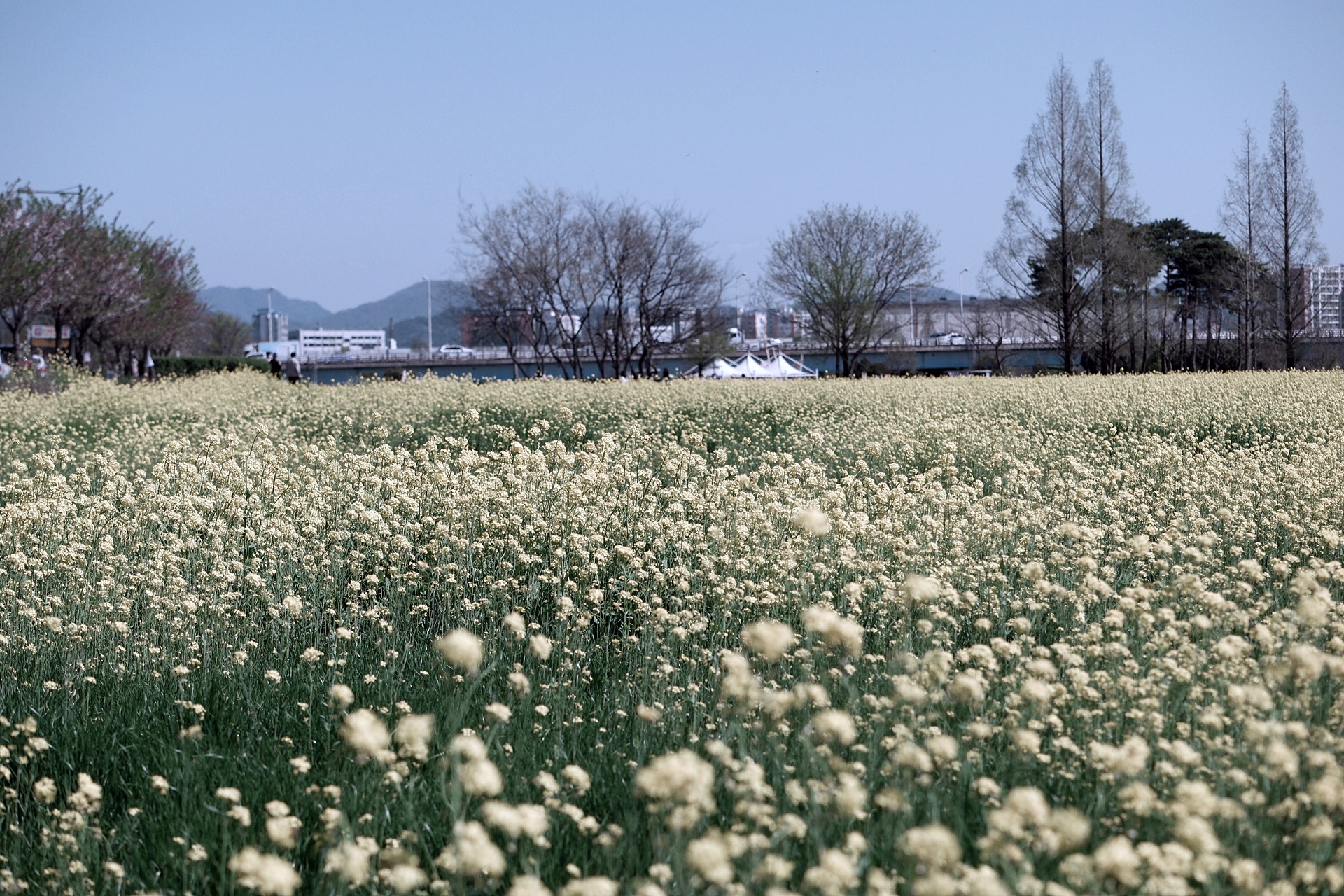 황룡강변을 따라 산책하듯 길섶에 핀 야생화를 담다보니 호남대학교 앞쪽에 친수공원에 유채꽃이 활짝 피었습니다