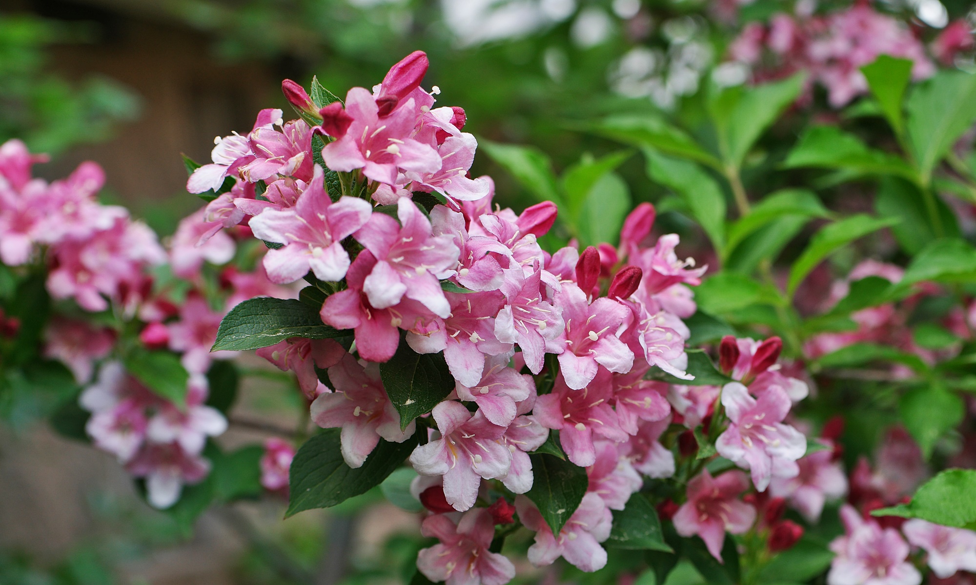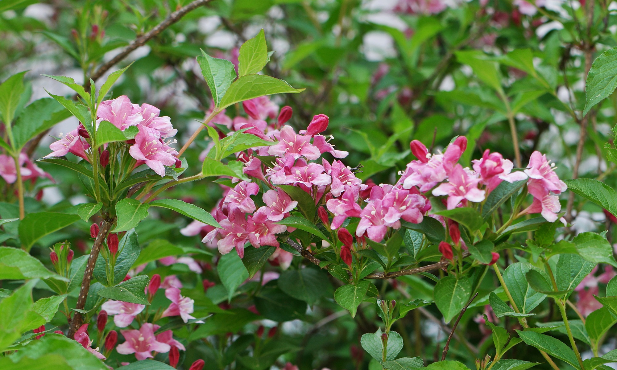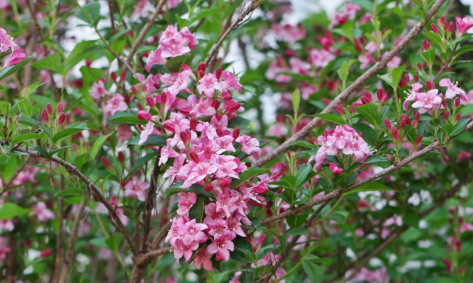 광주여대 입구에 병꽃나무가 몇그루 탐스럽게 꽃을 피우고 있습니다