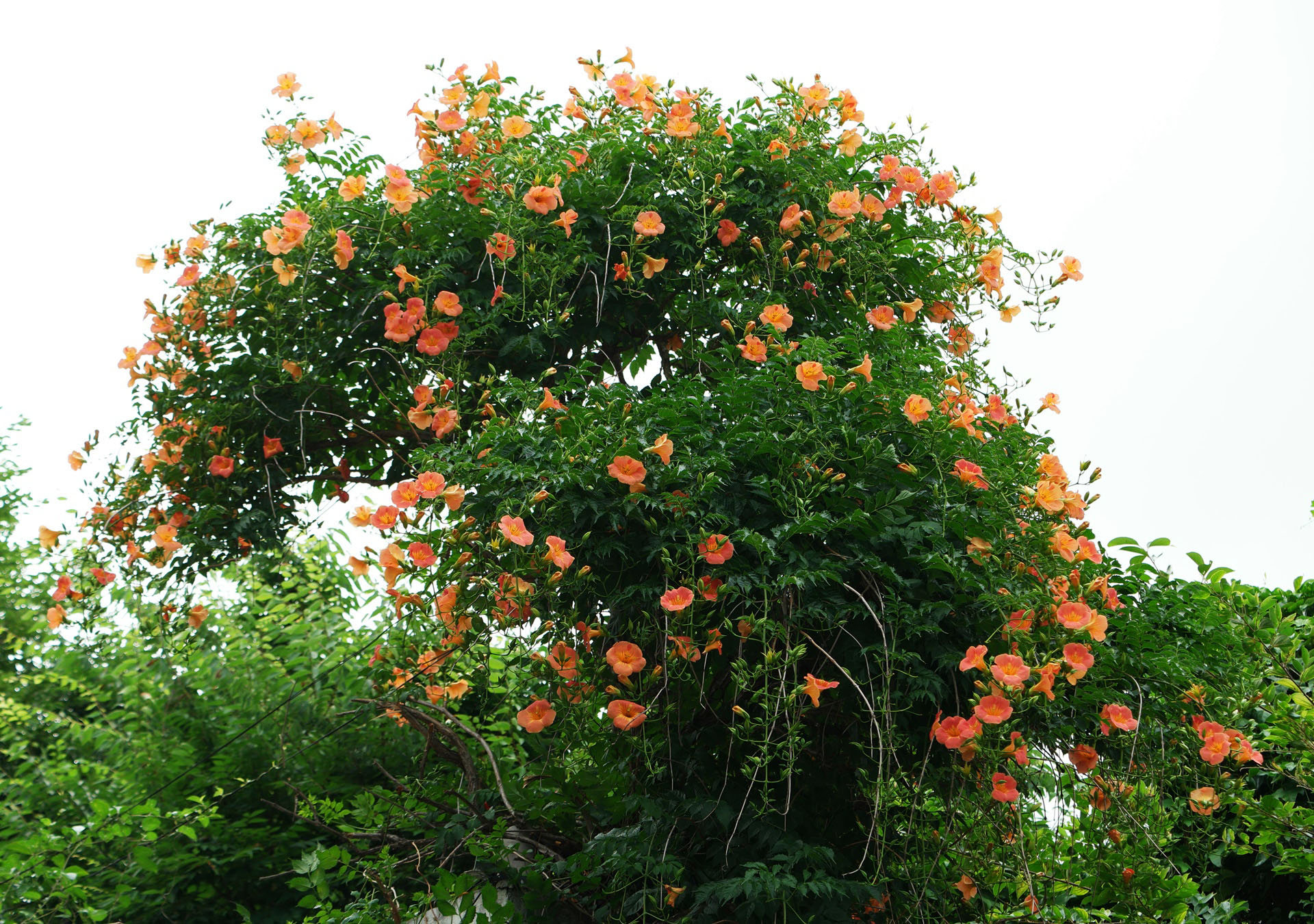 한번 피우기 시작하면 두달 정도 꽃을 불 수 있기에 사랑을 받고 있으며 능소화가 핀 작품사진을 보면 좁은 골목길